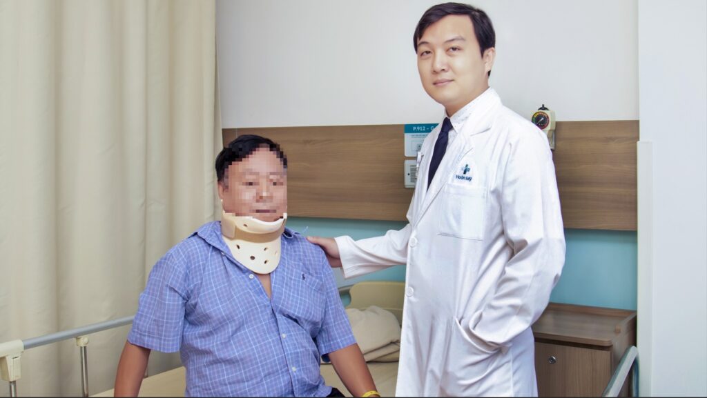 Ê-kíp phẫu thuật đã tiến hành giải ép và hàn liên thân đốt lối trước (ACDF) ở các đốt sống C3–C4 và C4–C5. Kỹ thuật này giúp loại bỏ nguyên nhân chèn ép tủy sống và ổn định cột sống cổ. Sau một ngày phẫu thuật, anh H đã có thể tự đi lại, cơn đau biến mất.