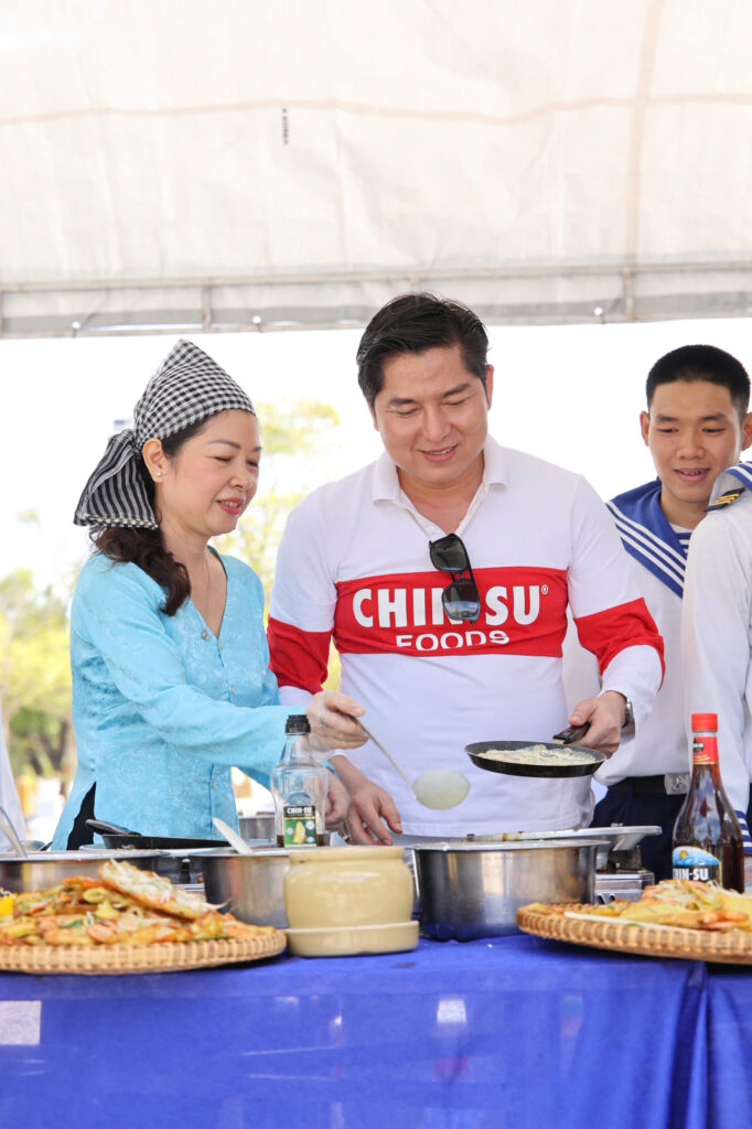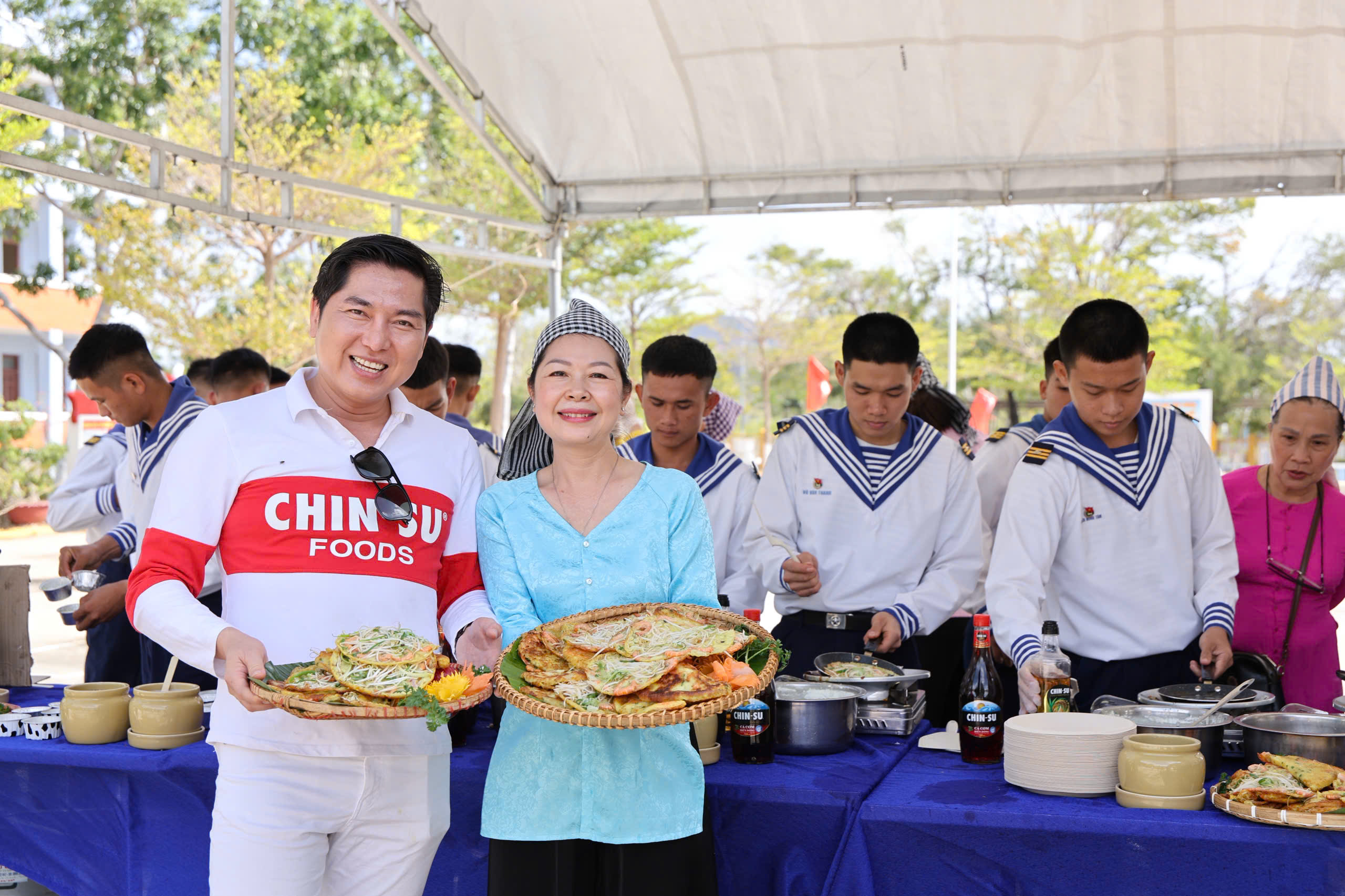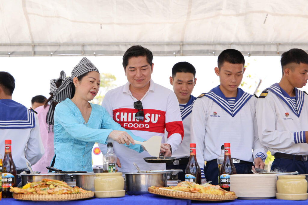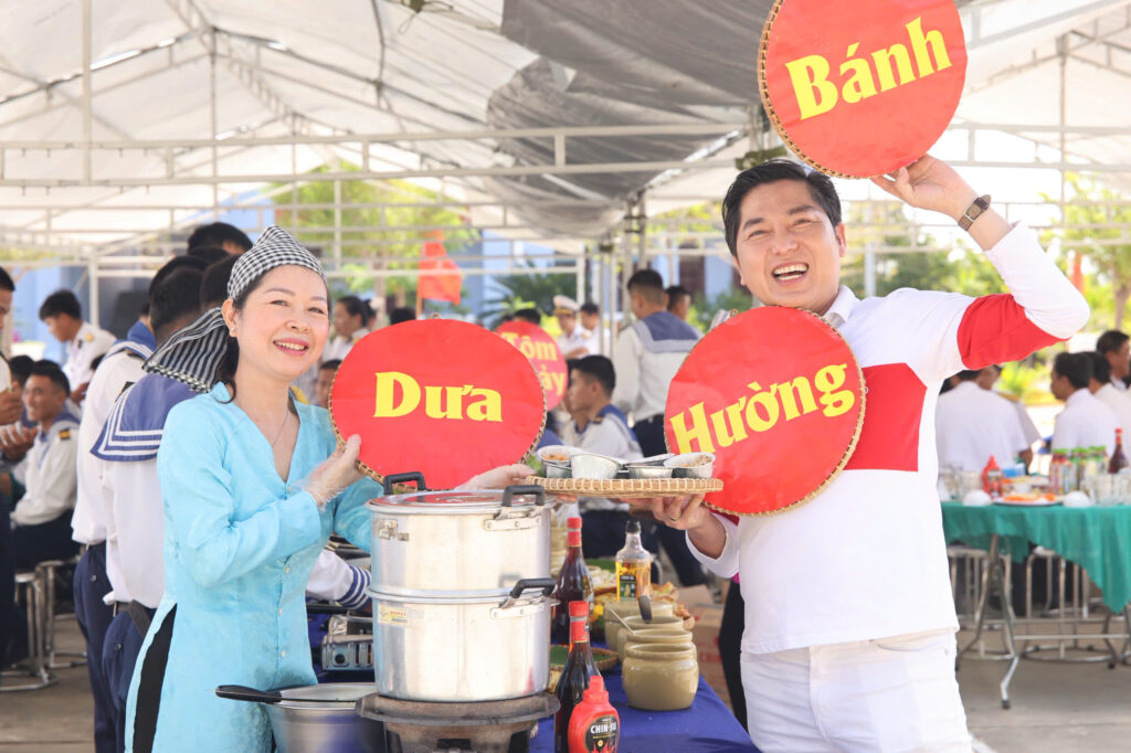 Nhân dịp những ngày gần Tết Nguyên đán, khi khắp nơi đang rộn ràng chuẩn bị cho mùa đoàn viên, tại quân cảng Cam Ranh, một “mùa xuân nhỏ” cũng được gửi gắm đến cán bộ, chiến sĩ Lữ đoàn 957, Hải quân Vùng 4 bằng những nghĩa tình rất đỗi giản dị. Đồng hành trong hoạt động giao lưu – sẻ chia, BTV Tuấn Duy cùng nghệ nhân bánh dân gian Oanh Tạ đã trực tiếp chuẩn bị và trao tặng hai món bánh đậm hương vị quê nhà: bánh xèo giòn thơm và bánh dưa hường mộc mạc, ngọt lành. Mỗi chiếc bánh không chỉ là món ăn ấm bụng giữa ngày bận rộn, mà còn là lời tri ân chân thành, tiếp thêm động lực để người lính biển vững vàng nơi đầu sóng ngọn gió.