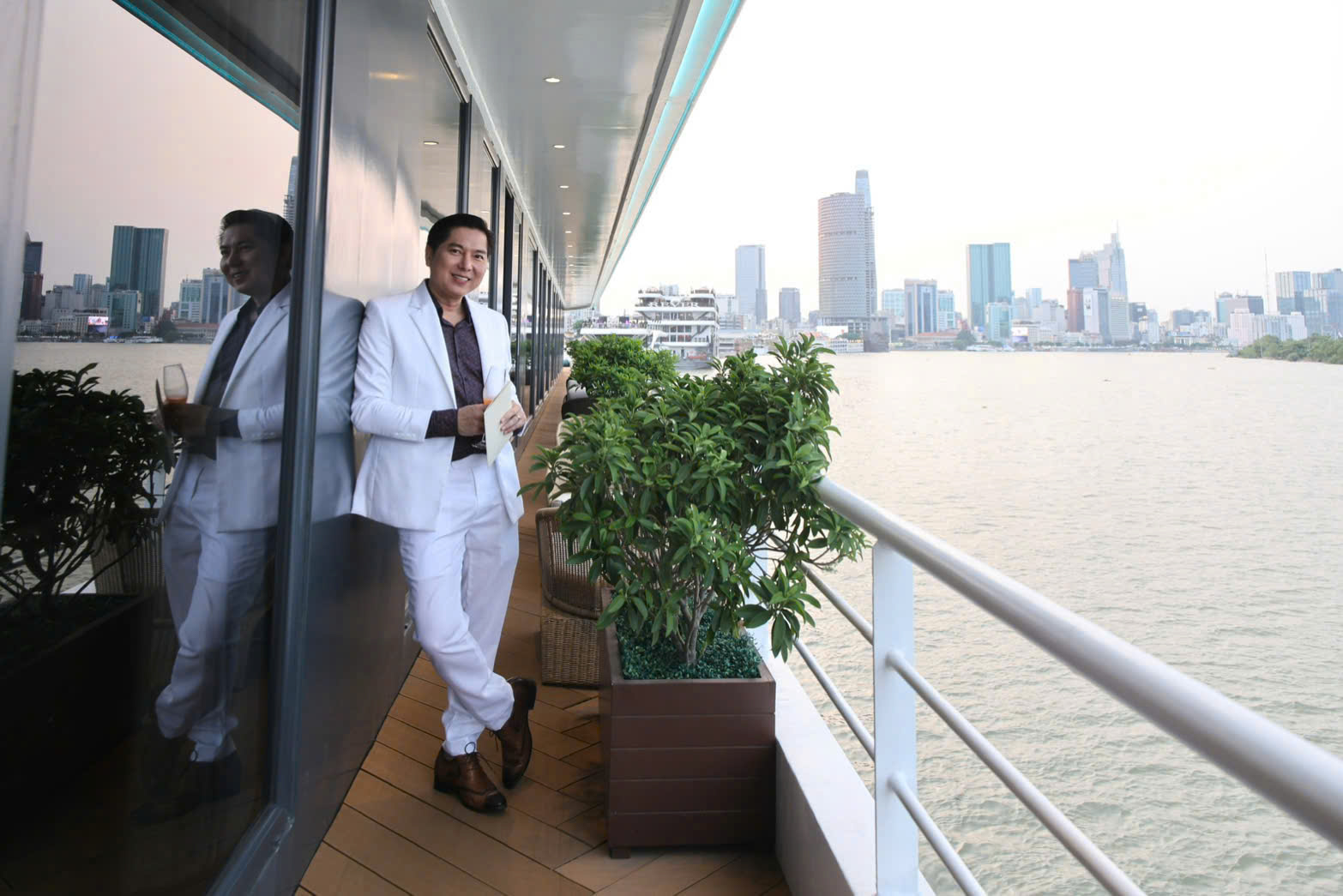 Điều đặc biệt nhất của hành trình không nằm ở sự sang trọng đơn thuần, mà nằm ở cảm giác được “nghỉ giữa thành phố nhưng lại như rời khỏi thành phố”. Khi du thuyền bắt đầu rời bến, sông Sài Gòn mở ra một góc nhìn rất khác về TP.HCM. Những tòa nhà cao tầng, những cây cầu, những mảng sáng rực rỡ của đô thị hiện lên mềm mại hơn khi soi bóng xuống mặt nước. Tất cả tạo nên một bức tranh vừa hiện đại, vừa lãng mạn.
