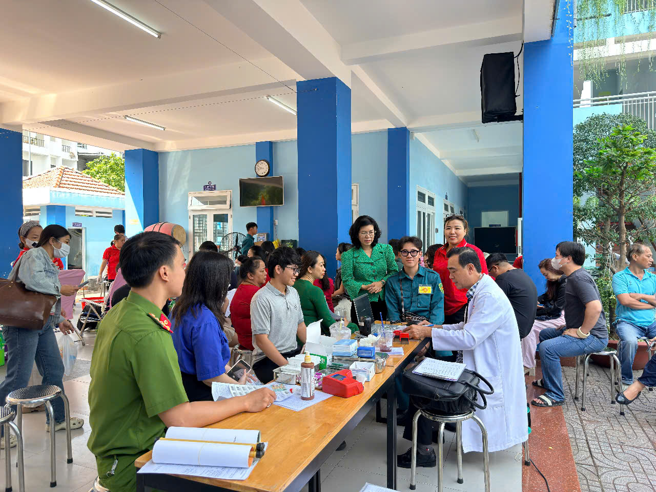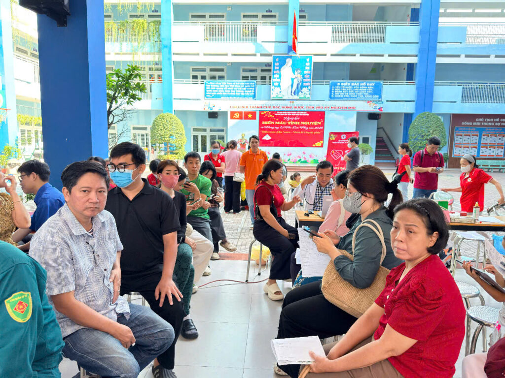Đông đảo người dân và cán bộ Phường Tân Sơn Hòa tham gia hiến máu.