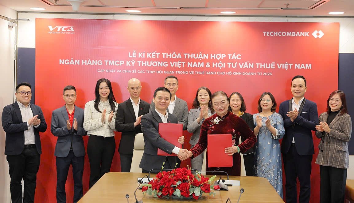 Trong bối cảnh hơn 5 triệu hộ kinh doanh trên cả nước sẽ bước vào giai đoạn chuyển đổi quan trọng về chính sách thuế từ năm 2026, Ngân hàng TMCP Kỹ Thương Việt Nam (Techcombank) và Hội tư vấn thuế Việt Nam (VTCA) đã ký kết thỏa thuận hợp tác chiến lược nhằm triển khai các chương trình truyền thông, chia sẻ và tư vấn kiến thức thuế cho cộng đồng hộ kinh doanh và các hộ kinh doanh đang trong quá trình chuyển đổi lên doanh nghiệp.