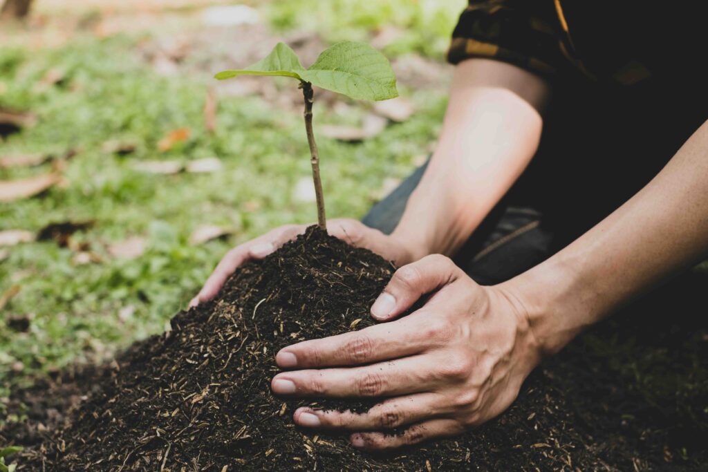 Agriculture. Growing plants. Plant seedling. Hand nurturing young baby plants